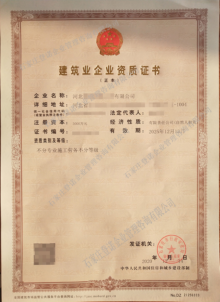 不分等級勞務(wù)資質(zhì)辦理成功案例電子版