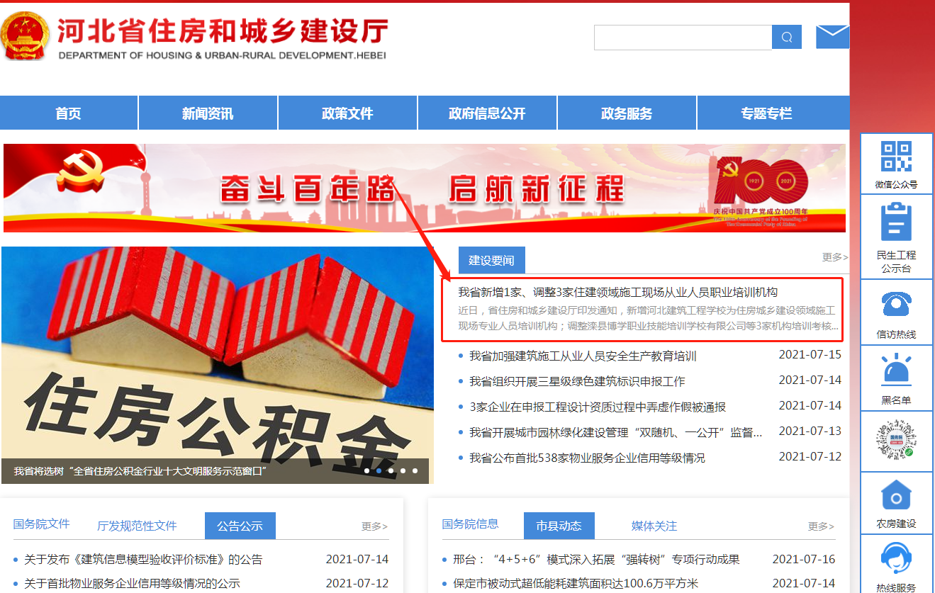 7月16日,也就是今日河北省住房和城鄉(xiāng)建設(shè)廳發(fā)布:《我省新增1家、調(diào)整3家住建領(lǐng)域施工現(xiàn)場從業(yè)人員職業(yè)培訓(xùn)機(jī)構(gòu)》